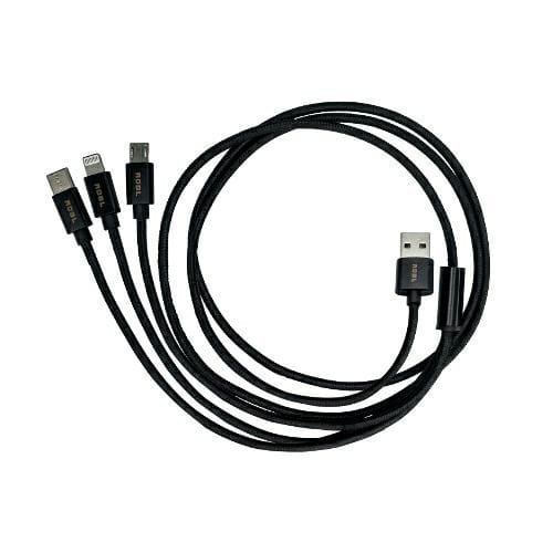 Rozgałęziacz USB z trzema końcówkami. Kompatybilny z IPHONE, USB-C oraz MICRO-USB.