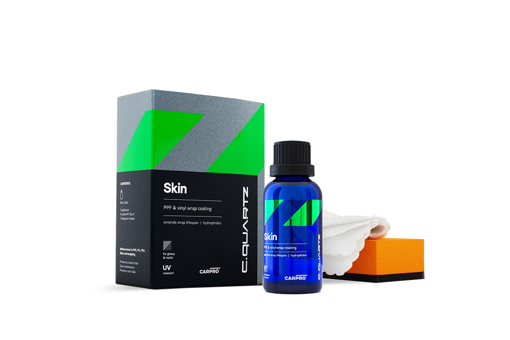 CarPro CQuartz Skin - powłoka opracowana do aplikacji na folie ochronne, folie winylowe, miękkie i twarde plastiki. Przeznaczona do stosowania na powierzchnie matowe, satynowe i w połysku.