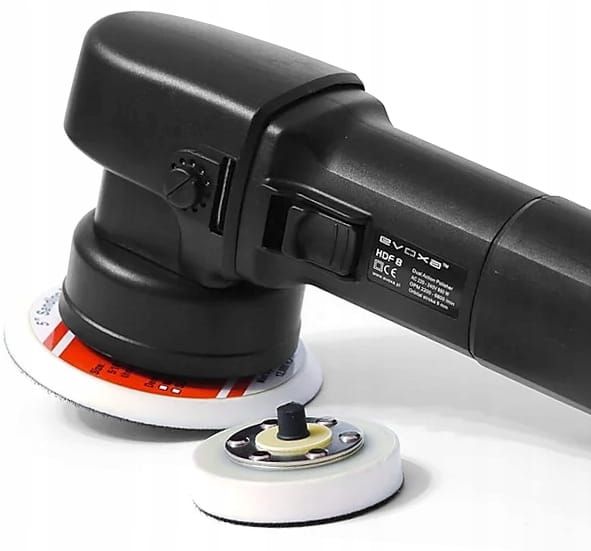 Evoxa HDF8 - to mała polerka Dual Action, która ze względu na skok mimośrodu 8 mm, skierowana jest na rynek amatorski. Jednak wykonanie maszyny nie ustępuje jakością pozostałym modelom marki Evoxa. Świadczy o tym fakt, że została ona wyposażona w ten sam silnik o dużej mocy 850 W, co droższy model skierowany na rynek profesjonalny (HDP10).
