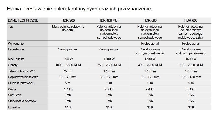 Evoxa HDR500 – to polerka rotacyjna należąca do linii - PROFESSIONAL - dedykowana do detailingu i lakiernictwa samochodowego.