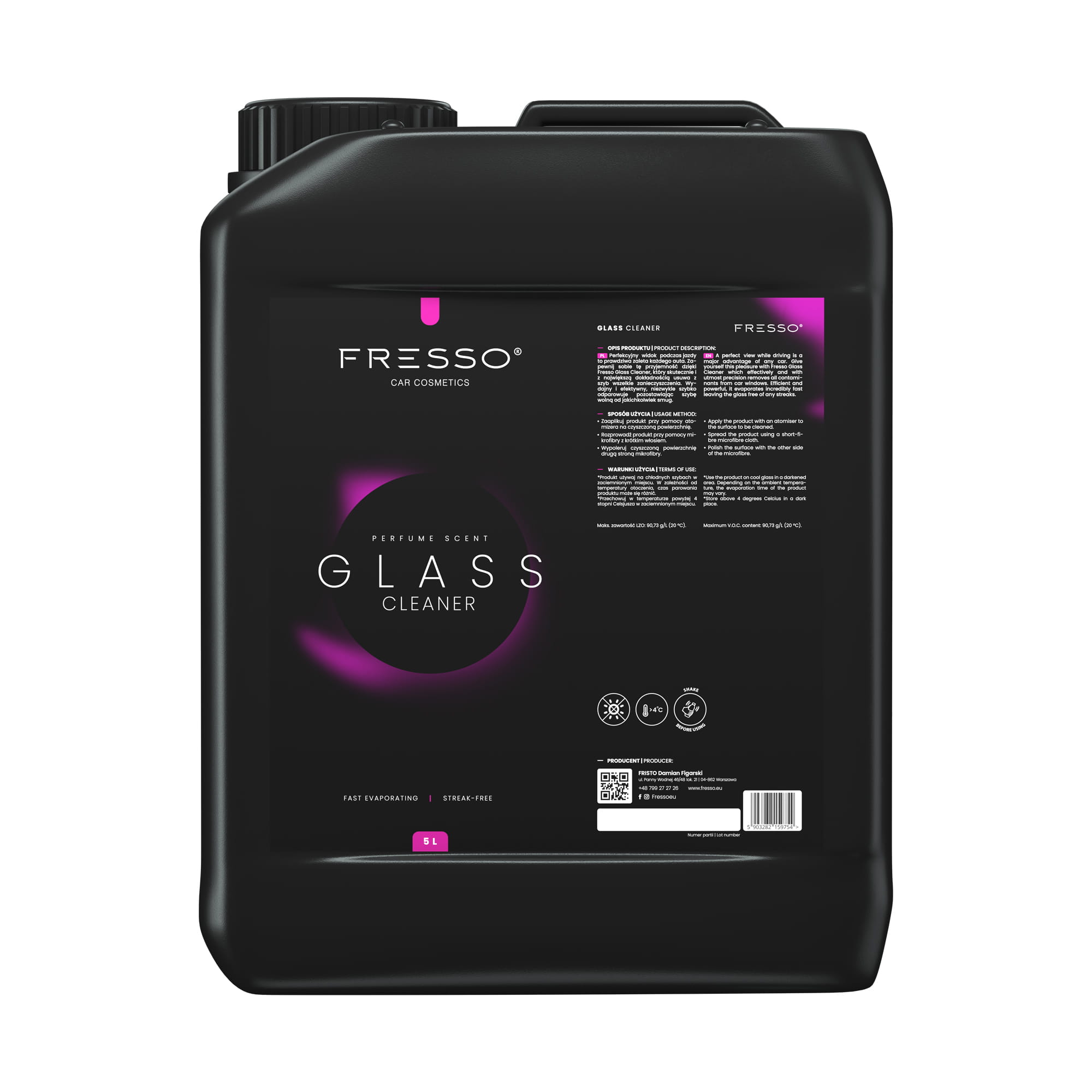 Perfekcyjny widok podczas jazdy to prawdziwa zaleta każdego auta. Zapewnij sobie tę przyjemność dzięki Fresso Glass Cleaner, który skutecznie i z największą dokładnością usuwa z szyb wszelkie zanieczyszczenia. Wydajny i efektywny, niezwykle szybko odparowuje pozostawiając szybę wolną od jakichkolwiek smug. I pomyśleć, że czyszczenie szyb może trwać zaledwie kilka sekund i pachnieć… wyjątkową mieszanką cytrusów! Sprawdź!