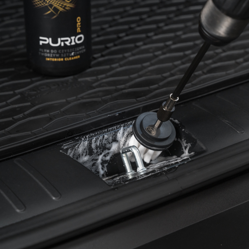 Szczotka punktowa MINI Ø50 mm – kompaktowa, idealna do precyzyjnego czyszczenia trudno dostępnych miejsc, zakamarków oraz wnęk między fotelami czy wokół plastikowych elementów. Niezastąpiona przy detalach wymagających dokładności.