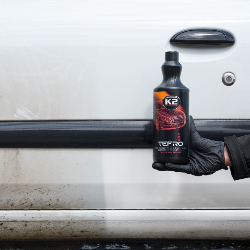 K2 TEFRO to zaawansowany środek czyszczący typu TFR (Traffic Film Remover), który został stworzony z myślą o szybkim i skutecznym usuwaniu najtrudniejszych zabrudzeń komunikacyjnych z powierzchni lakieru, felg stalowych i aluminiowych, opon oraz plastikowych elementów karoserii. Dzięki innowacyjnej, niskopiennej formule znacząco skraca czas pracy, gwarantując wysoką skuteczność mycia oraz perfekcyjne przygotowanie pojazdu do dalszej pielęgnacji, w tym do ręcznego mycia właściwego lub detailingu.