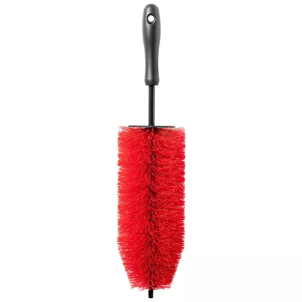 X-ROCKET WHEEL BRUSH to elastyczna i delikatna szczotka stworzona do dokładnego mycia felg, nawet w trudno dostępnych miejscach. Dzięki długości 46 cm i giętkiej konstrukcji z łatwością dociera do zakamarków, zapewniając skuteczne czyszczenie. Miękkie, gęste włosie jest bezpieczne dla powierzchni, nie powoduje zarysowań i gwarantuje komfort pracy. Szczotka posiada gumową nakładkę, która chroni przed chlapaniem, co czyni jej użycie jeszcze wygodniejszym. Wysoka odporność chemiczna sprawia, że doskonale współpracuje z różnymi preparatami do czyszczenia felg. Łatwa w czyszczeniu i wytrzymała.