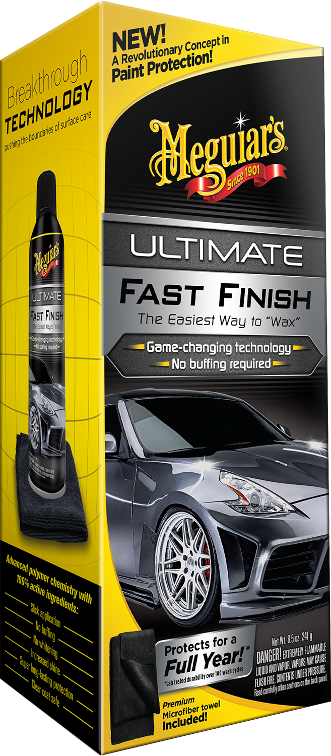 Meguiar's Ultimate Fast Finish to rewolucyjna formuła aerozolu, która zapewnia doskonały połysk dzięki długotrwałej, syntetycznej powłoce polimerowej, która jest niezwykle łatwa w użyciu.