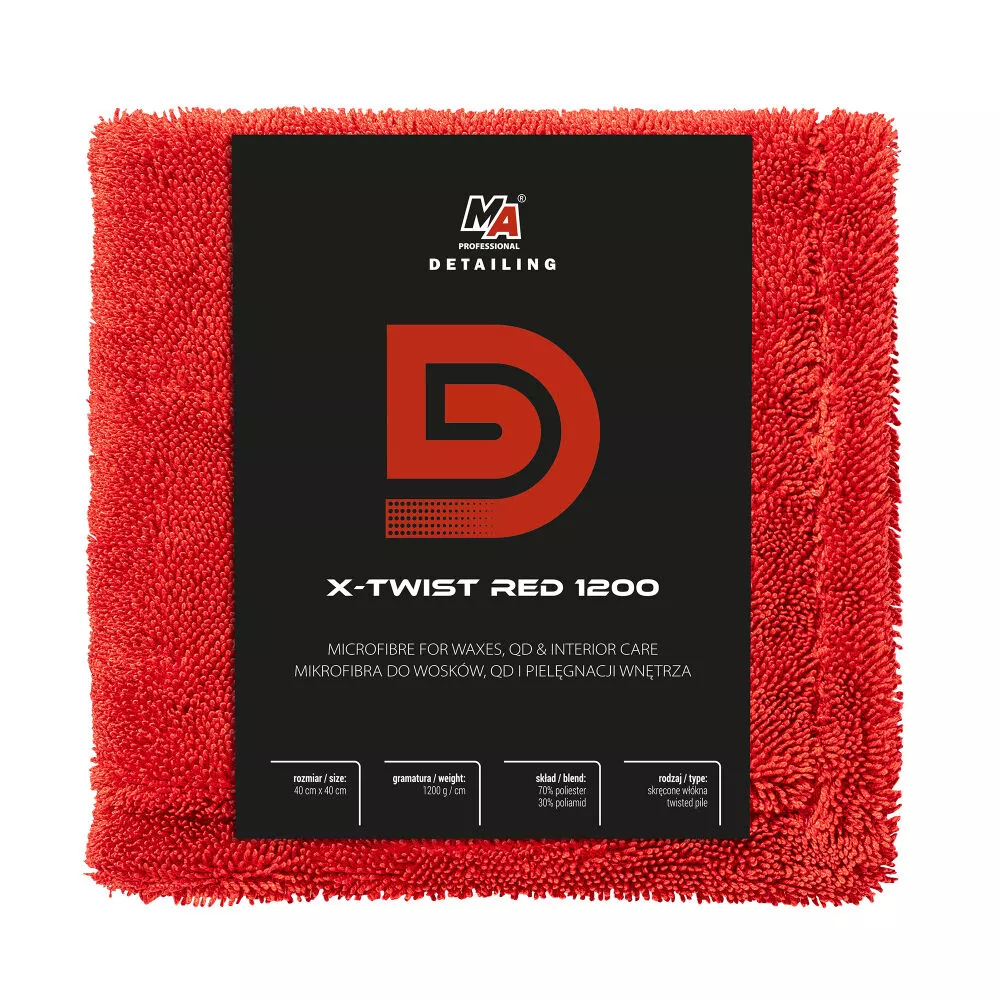 X-TWIST RED 1200 to kompaktowa mikrofibra stworzona z innowacyjnego splotu włókien typu TWISTED PILE, idealna do pielęgnacji wnętrza, aplikacji wosków i quick detailerów.