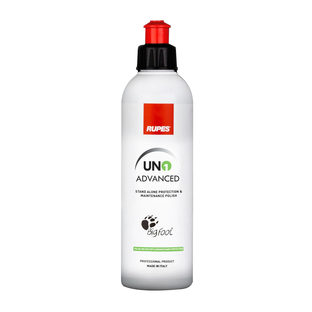 UNO ADVANCED to najnowsza pasta polerska, która w jednym etapie zabezpiecza lakier, usuwając przy tym drobne defekty i hologramy na lakierze. Zastrzeżona formuła przez firmę RUPES zawiera nano technologię, która zapewni trwałą ochronę przed zanieczyszczeniami do 12 miesięcy. UNO ADVANCED utwardza się przez 4 godziny po aplikacji. W tym czasie należy unikać kontaktu z wodą. Pasta zapewnia szybkie rezultaty przy minimalnym nakładzie pracy dzięki czemu jest idealnym rozwiązaniem dla usług ekspresowych, detalicznych sklepów, salonów samochodowych itp.