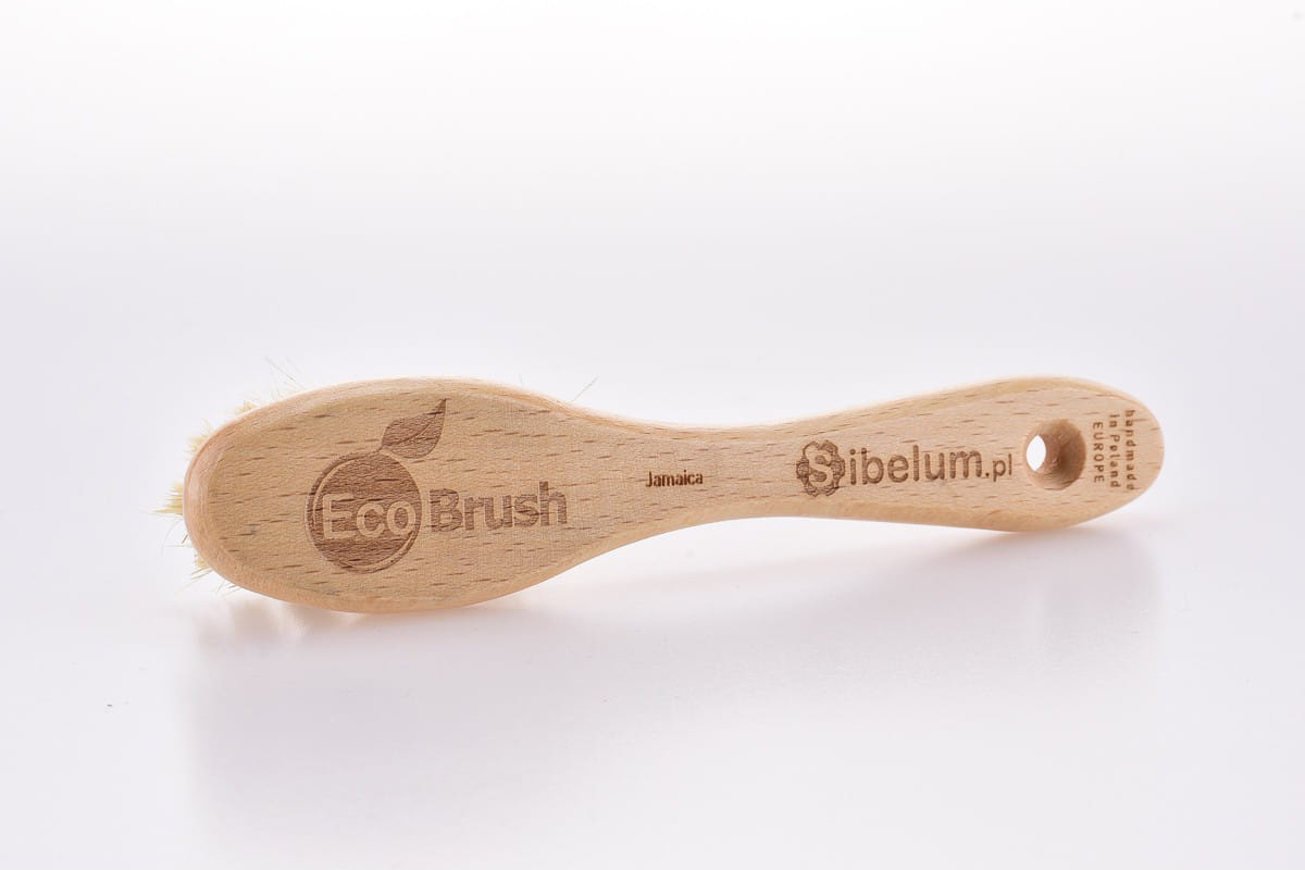 - Naturalne włosie o dużej gęstości cienkich włókien, prawdziwe drewno, ekologiczny lakier. Ekologiczna szczotka.